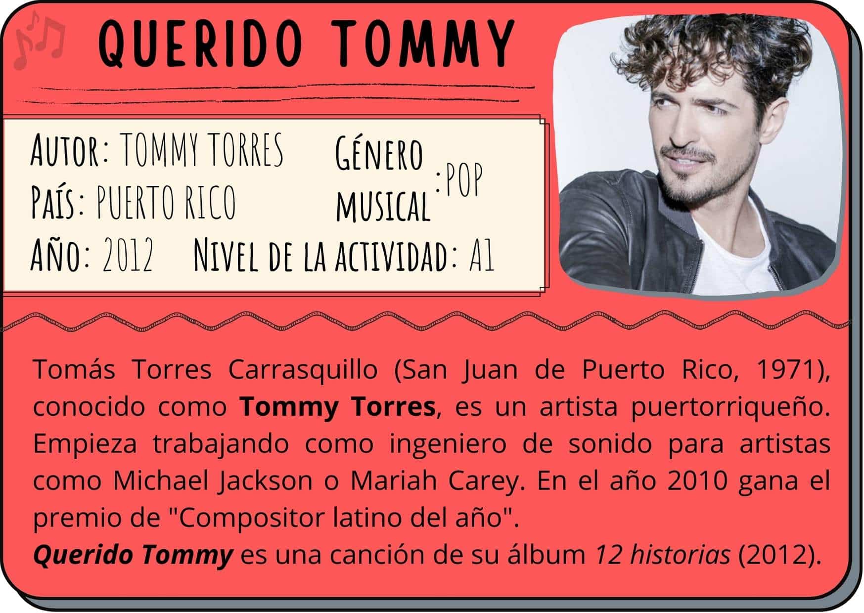 A partir de la ficha informativa, de la página de Wikipedia de Tommy Torres o de su página oficial, señala dos informaciones falsas entre las siguientes sobre el artista puertorriqueño.