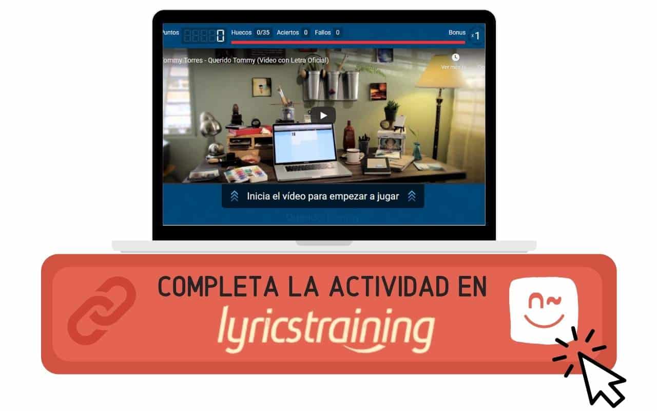 Ahora vas a escuchar la canción titulada Querido Tommy de Tommy Torres. Presta atención, completa esta actividad en Lyricstrainning y después vuelve a ProfeDeELE para seguir c...