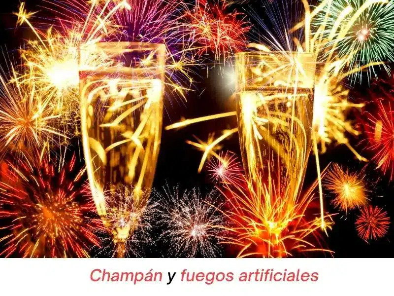 Después de las doce, se brinda con cava o champán se tiran petardos, hay fuegos artificiales y se organizan unas fiestas llamadas cotillones.
