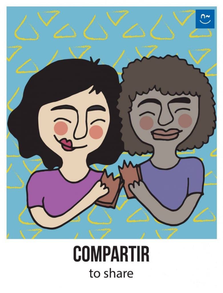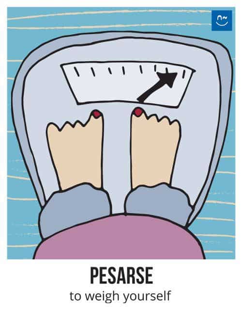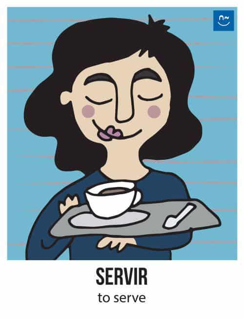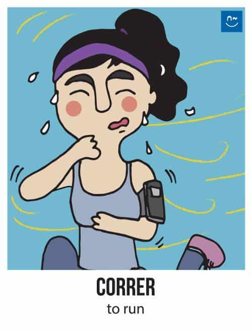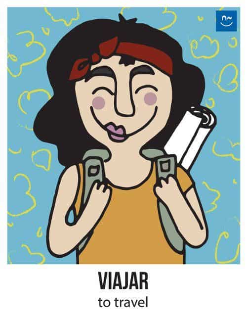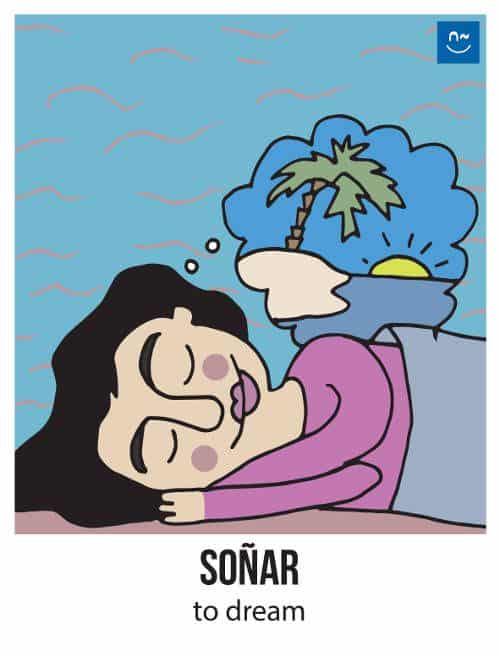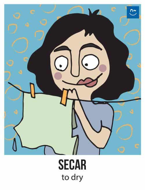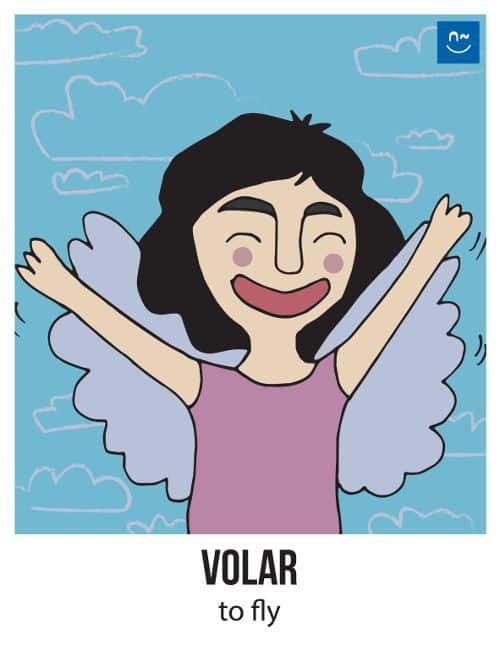 Escoge un verbo. Tus compañeros tendrán que adivinar ese verbo haciéndote preguntas con el verbo inventado “fliflear“. Observa el ejemplo de la imagen.