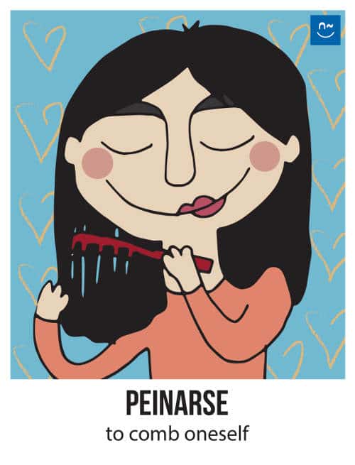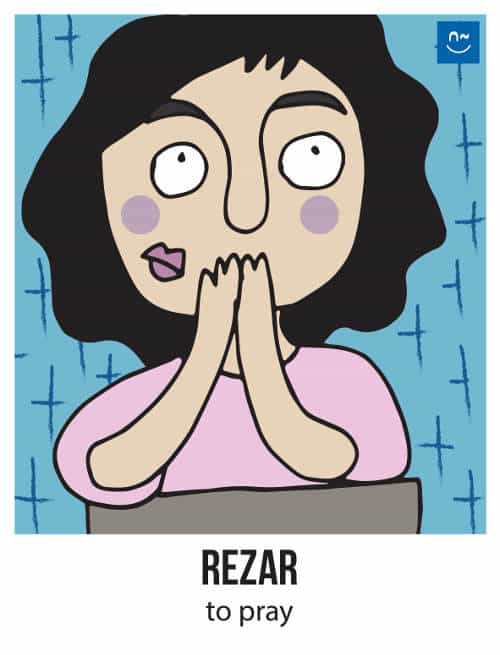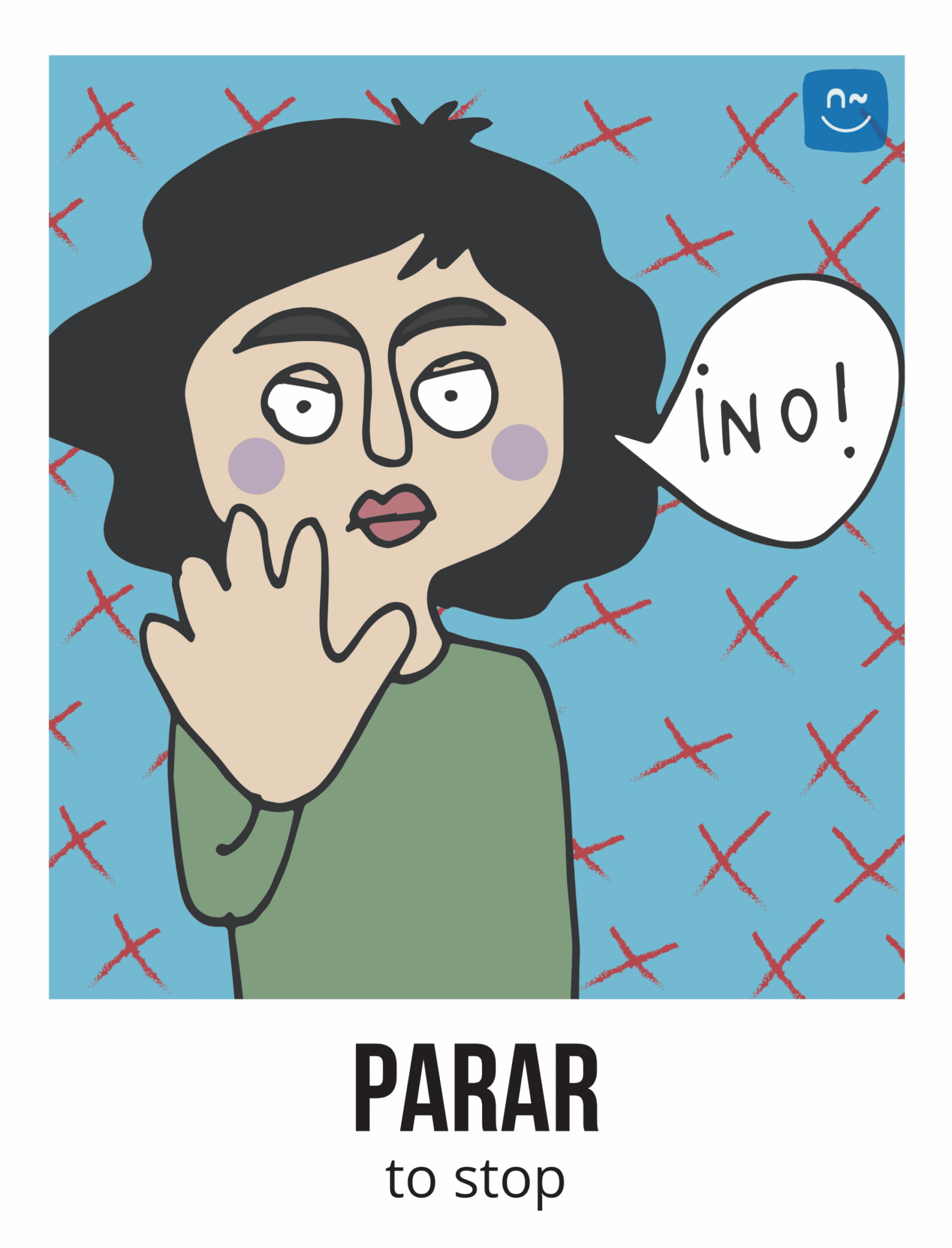 Escoge un verbo. Tus compañeros tendrán que adivinar ese verbo haciéndote preguntas con el verbo inventado “fliflear“. Observa el ejemplo de la imagen.