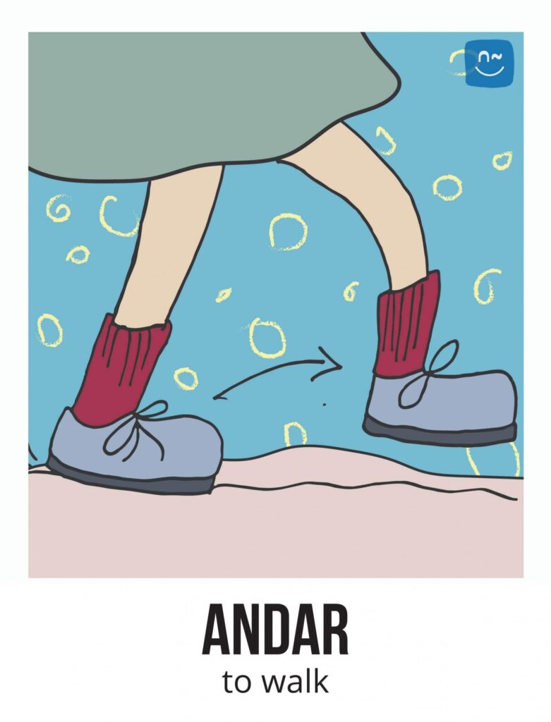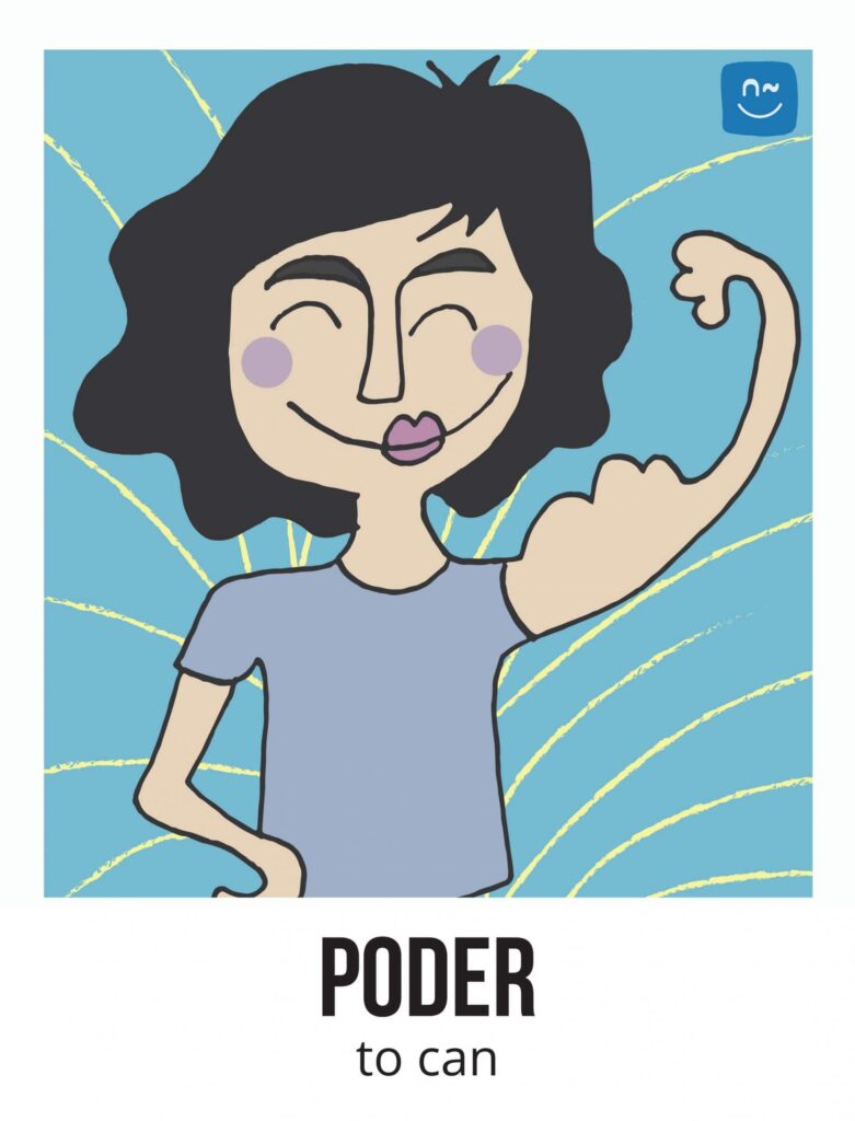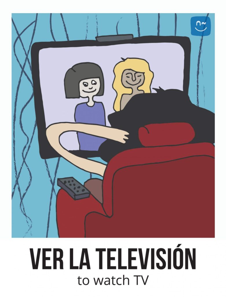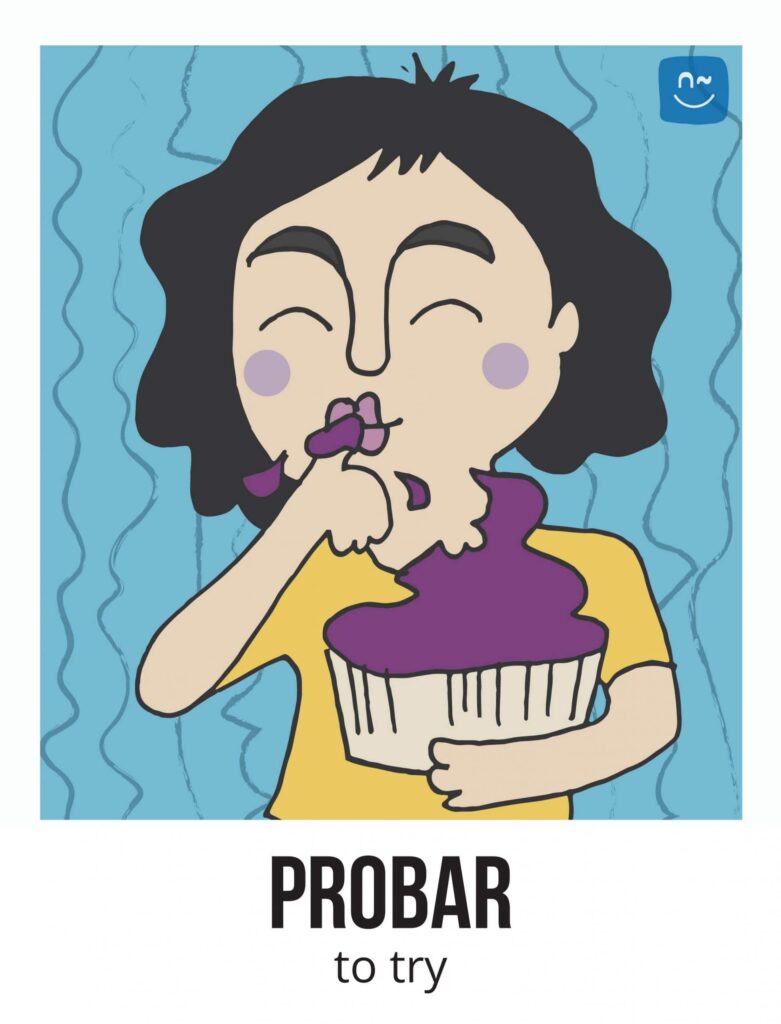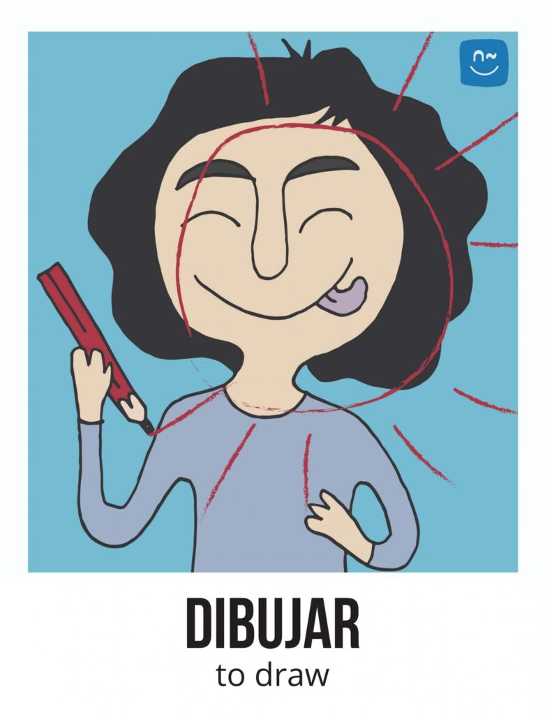 Escoge un verbo. Tus compañeros tendrán que adivinar ese verbo haciéndote preguntas con el verbo inventado “fliflear“. Observa el ejemplo de la imagen.