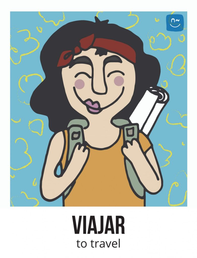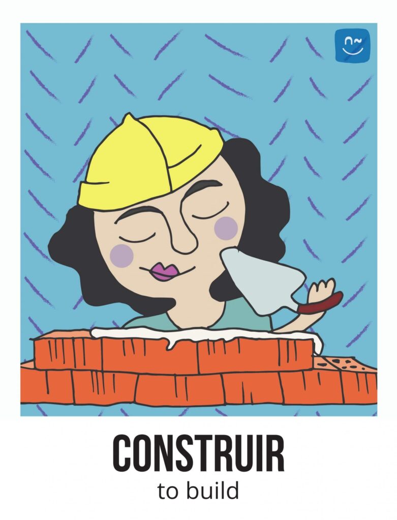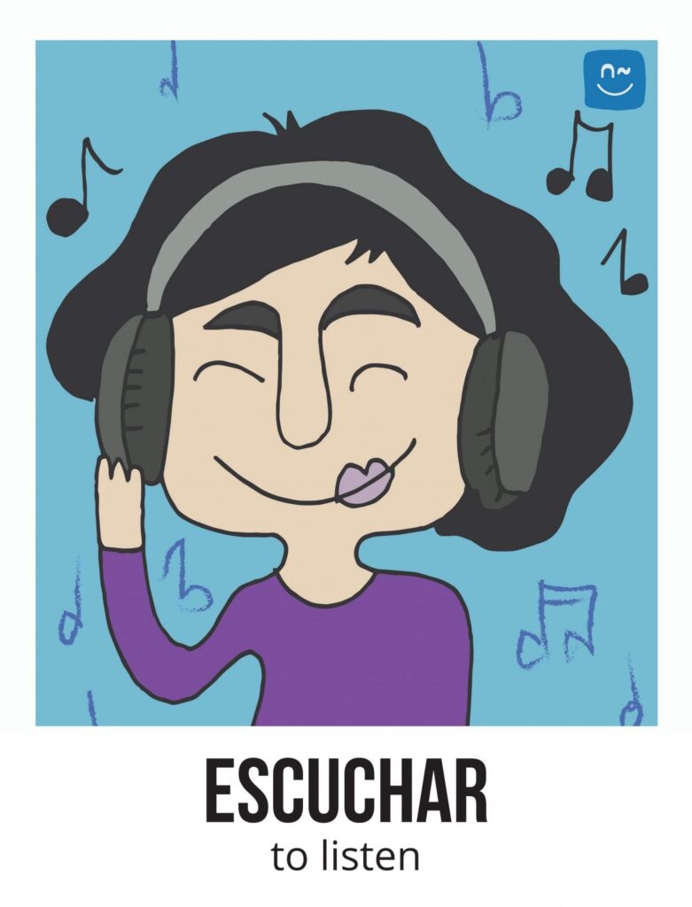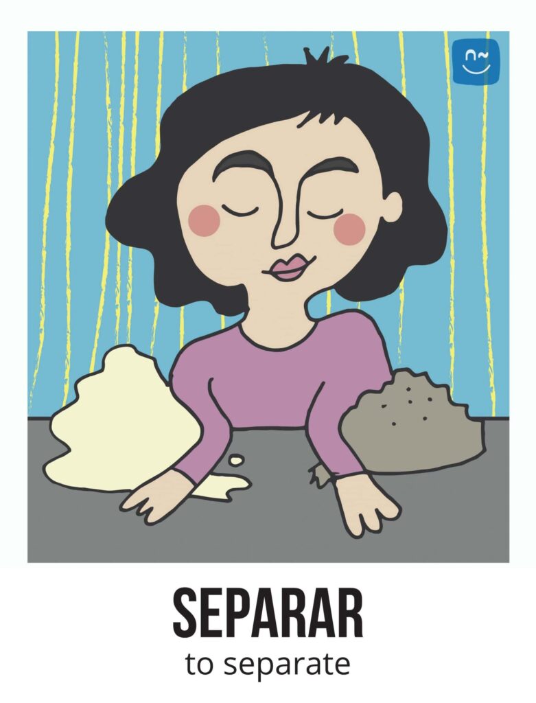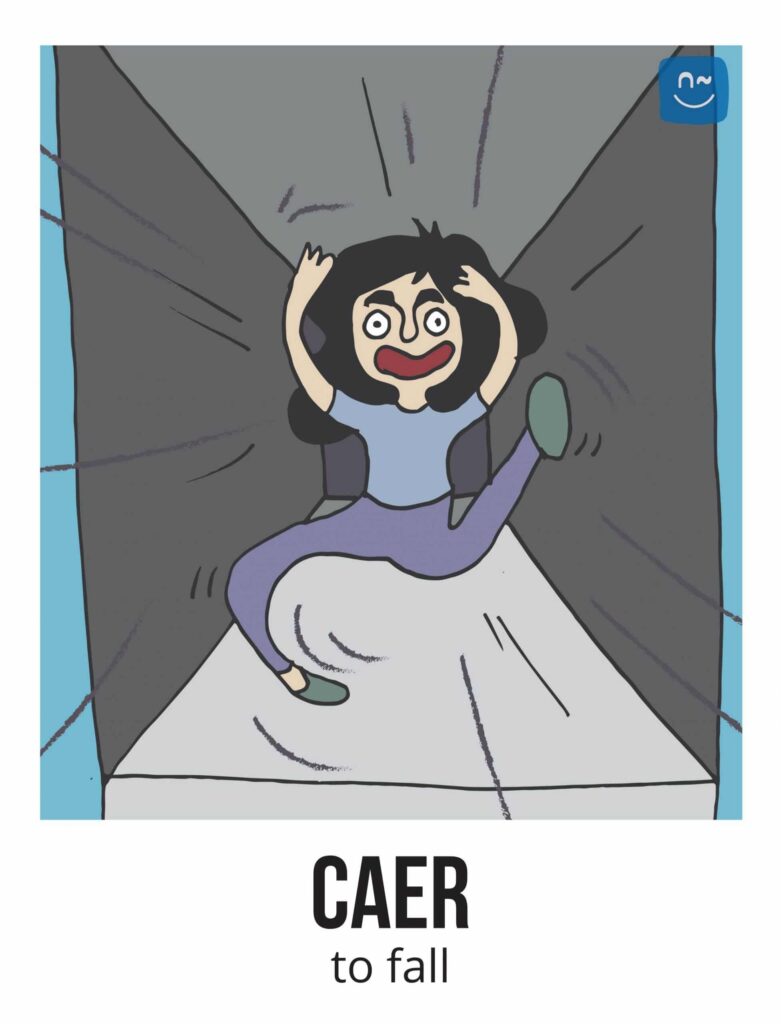 Escoge un verbo. Tus compañeros tendrán que adivinar ese verbo haciéndote preguntas con el verbo inventado “fliflear“. Observa el ejemplo de la imagen.