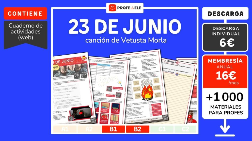 La letra de la canción 23 de junio está llena de imperativos. Completa la actividad siguiente con los verbos en imperativo que van a aparecer en la canción. Si necesitas una revisión del imperativo, haz clic en el siguiente enlace.