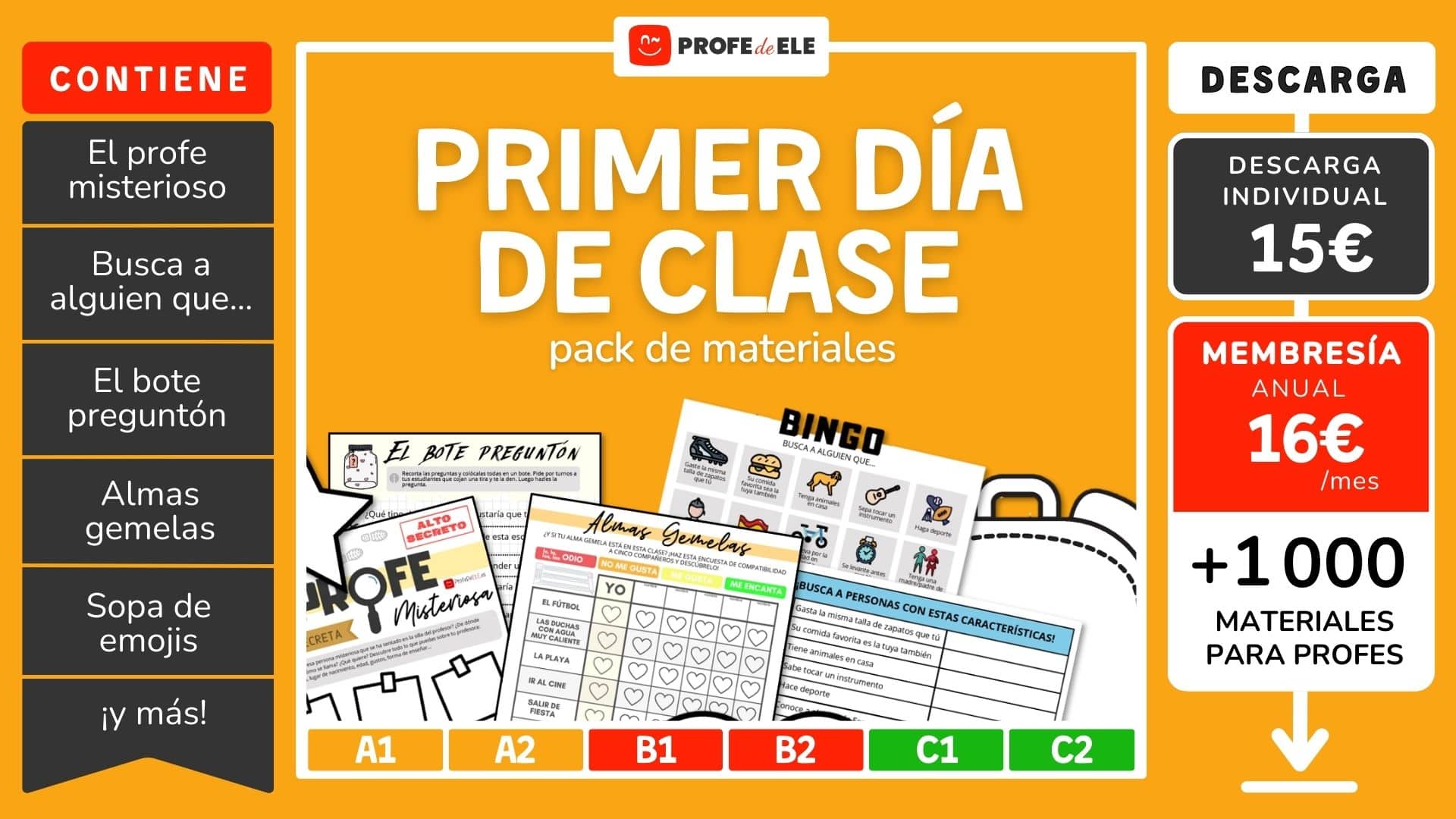 En nuestro primer día de clase, la descarga de energía positiva es importante para crear un ambiente sereno y de confianza recíproca. Para ello, en esta entrada te proponemos una serie de actividades y recursos para realizar el primer día de clase que seguro que te van a resultar muy útiles para empezar con buen pie con tu clase, tengan el nivel o la edad que tengan. Estas actividades ayudarán a establecer un entorno de aprendizaje colaborativo desde el principio, fomentando la participación activa de los estudiantes en la exploración y desarrollo de los temas del curso. ¡Descarga estas ideas y úsalas para un comienzo exitoso del curso escolar!