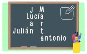 Otra actividad para el primer día de clase, consiste en escribir en la pizarra todos los nombres unidos entre sí. Primero puede salir la profesora o el profesor, escribir su nombre y presentarse y con nuestro nombre en la pizarra, los demás alumnos van saliendo de uno en uno, escribiendo sus nombres entrelazándose y presentándose.