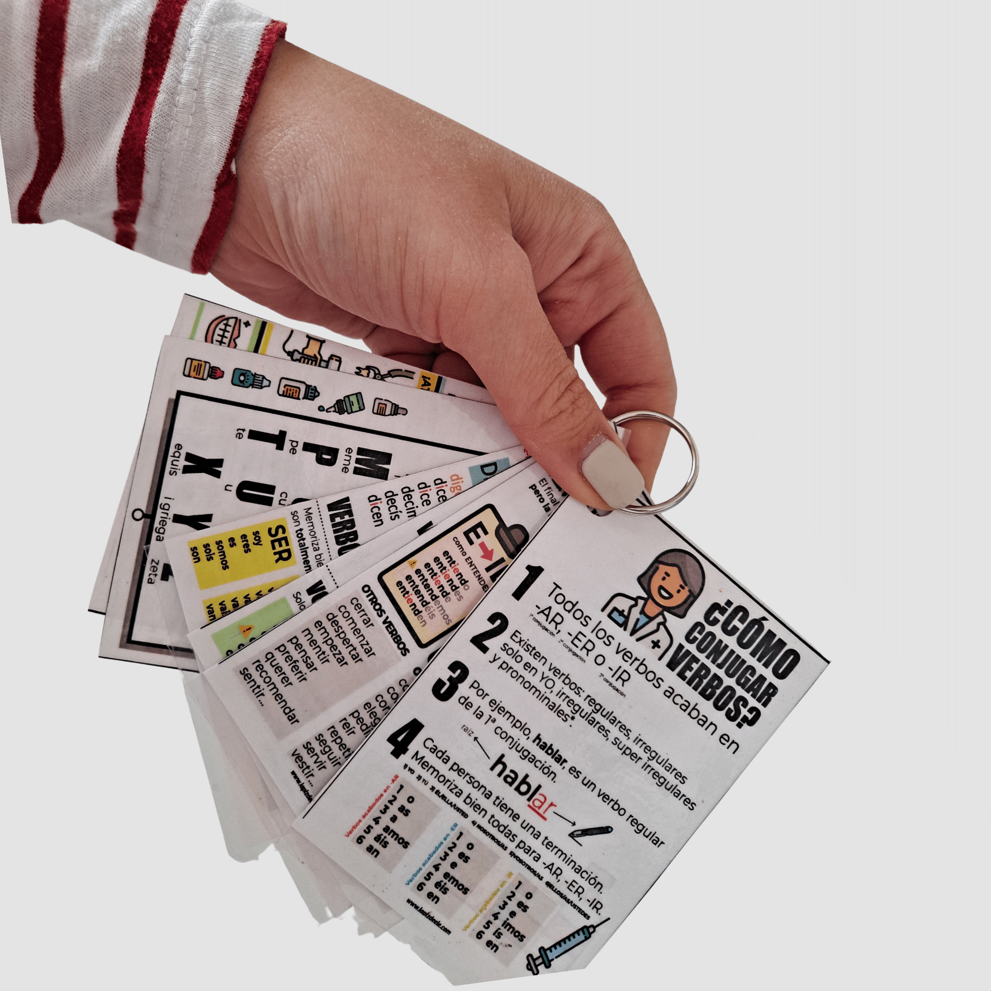 - Recomiendo su uso: para tarjetas de vocabulario, de conjugaciones de tiempos verbales, pronunciación, conectores de ayuda…