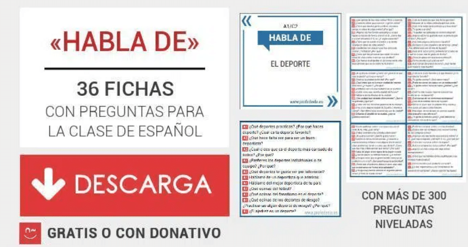 A continuación tienes unas cuantos temas con algunas preguntas para hablar en clase de español. Si quieres descargar todas las fichas con las preguntas niveladas, descárgalas en Gumroad gratis o con donativo para apoyar el trabajo de ProfedeELE.