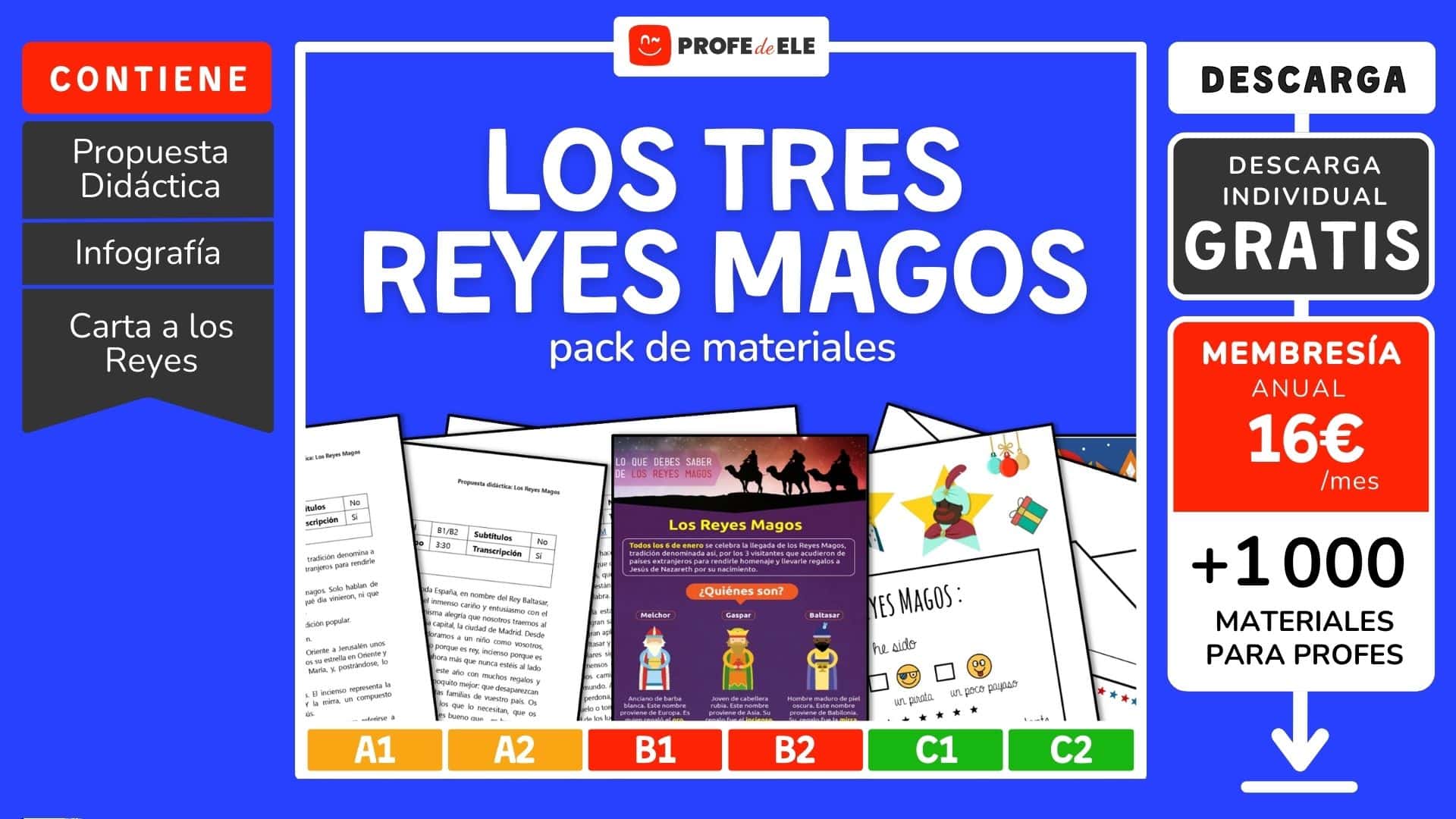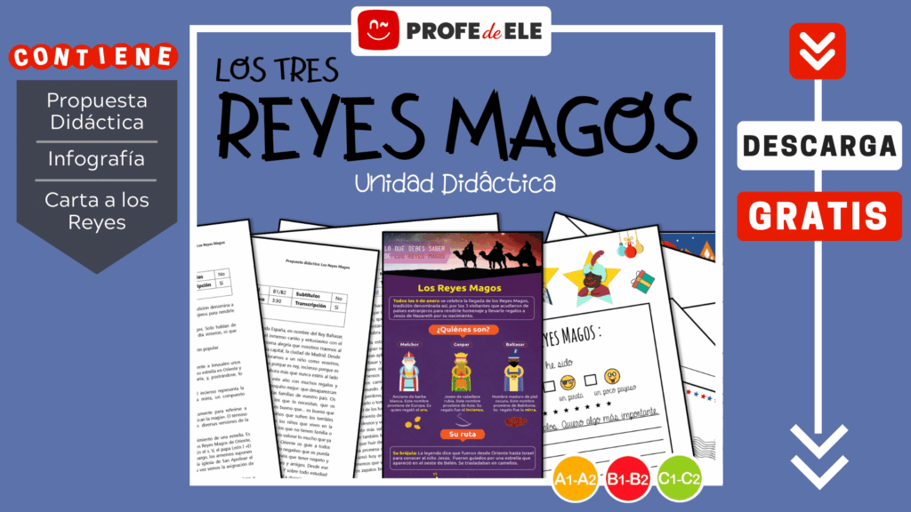 Una buena actividad para introducir a nuestros alumnos de ele los Reyes Magos, es la visualización de un vídeo para la enseñanza de esta festividad. Dependiendo del nivel, te proponemos unas opciones u otras para conocer a los Reyes Magos y el léxico relacionado, así como preguntas de comprensión auditiva. Todos los vídeos tienen transcripción y los de niveles bajos están subtitulados.