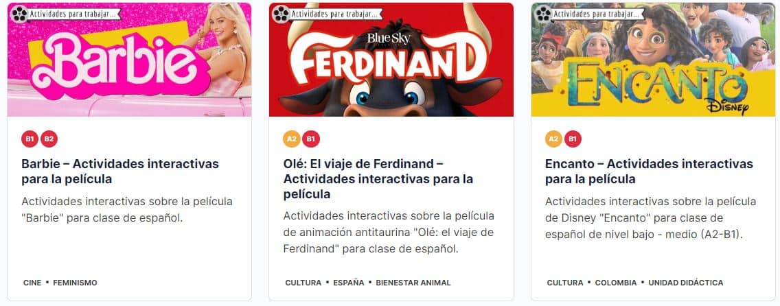 ProfedeELE te ofrece ya varias propuestas listas para llevar al aula y poner en práctica todo lo que os he comentado en esta entrada. Encontrarás tanto cortometrajes como películas. Aquí puedes ver unos ejemplos: